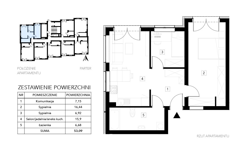 UWAGA !. Powierzchnia mieszkania liczona wg projektu na etapie projektu wykonawczego i realizacji, mogą wystąpić korekty powierzchni lokali i układzie ścian. Powierzchnia liczona bez tynków wewnętrznych.